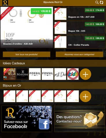 L’app officiel de Bijouterie Rich’Or. Une gamme de produits des plus variés, un service de réparation de bijoux et de montres sur place ainsi qu’une équipe expérimentée font de la Bijouterie un endroit prisé des amossoisses et des amossois. Informez-vous de nos promotions et de nos nouveautés et participez aux concours de la bijouterie à partir de l’app.
