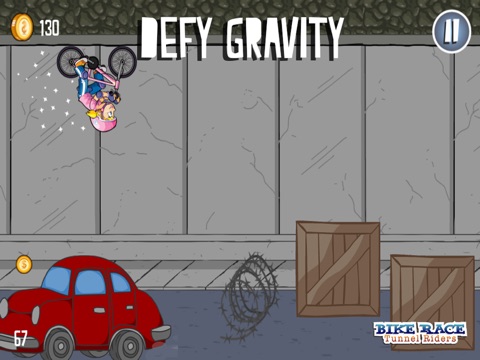 These bike racers have found they have a special power. They can defy gravity! With these new powers they have taken to the city tunnels and used it as their new playground. Dodge cars and other objects in the tunnel using their special anti-gravity powers!