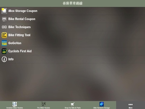 In this app you can find Most popular Bike Route in Hong Kong with GPS features. Its contains both Amateur & Professional Cycling Routes as your guide.