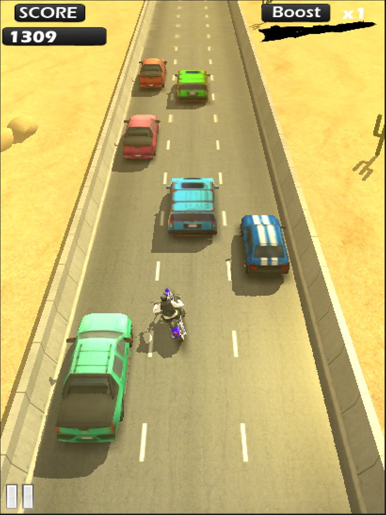 Get ready to ride a heavy bike on highway while racing your way through the heavy traffic. Be careful not to hit the traffic cars or the side concrete barriers otherwise at such a high speed your character will be thrown off the chopper flying high in the sky like a flightless bird lol. The game features 5 different environments. You can drive on the roads of venice and enjoy the city view or go on a long trip in the beautiful greenland or you can also test yourself by going on a ride in the desert and watch the sunset. Or you might be a person who loves to drive on long bridges on the sea and enjoy the view. Suit yourself and ride...