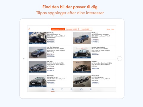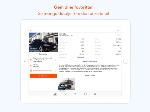 • Gemme biler som favoritter og få besked ved ændringer