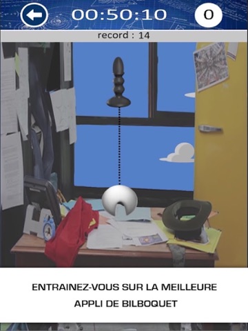 Aficionados du "Reverse Kenobi" et du "Schmorbluck" ou simple néophyte, vous allez pouvoir vous amuser avec cette petite appli simple de bilboquet: un mât, une boule et cest parti. 1 minute de bonheur pour vous améliorer et augmenter votre score !