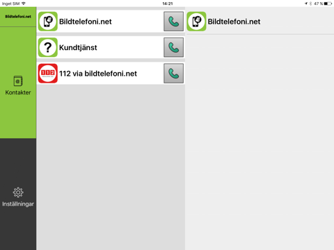 The application is a video based communication tool for contacting and use of the national service "Bildtelefoni.net" in Sweden. The service makes it possible for sign language users to meet with those who do not know sign language using sign language interpreters, regardless of the user location. The service is a publicly available community service in Sweden.