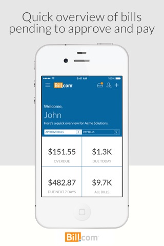 The BILL AP & AR app simplifies business payments and receivables for companies of all sizes. Whether you’re focused on accounts payable, accounts receivable, or just looking for an easy way to collect payments from a customer, BILL AP & AR streamlines tedious, manual processes—saving you 50% of the time spent paying and approving bills and helping you get paid 2x faster.