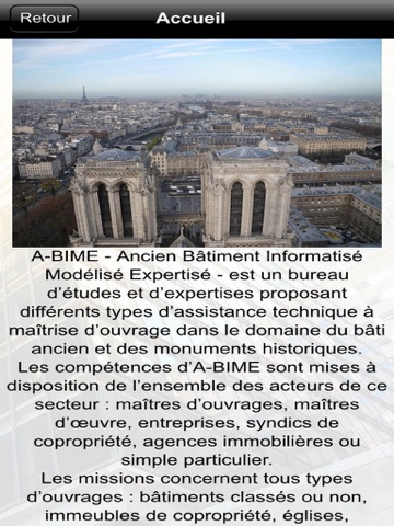 Lapplication "A-Bime" vous offre la possibilité de consulter toutes les infos utiles de larchitecte (Tarifs, prestations, avis…) mais aussi de recevoir leurs dernières News ou Flyers sous forme de notifications Push.