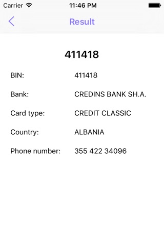Search for card issuing bank name in Bin Database