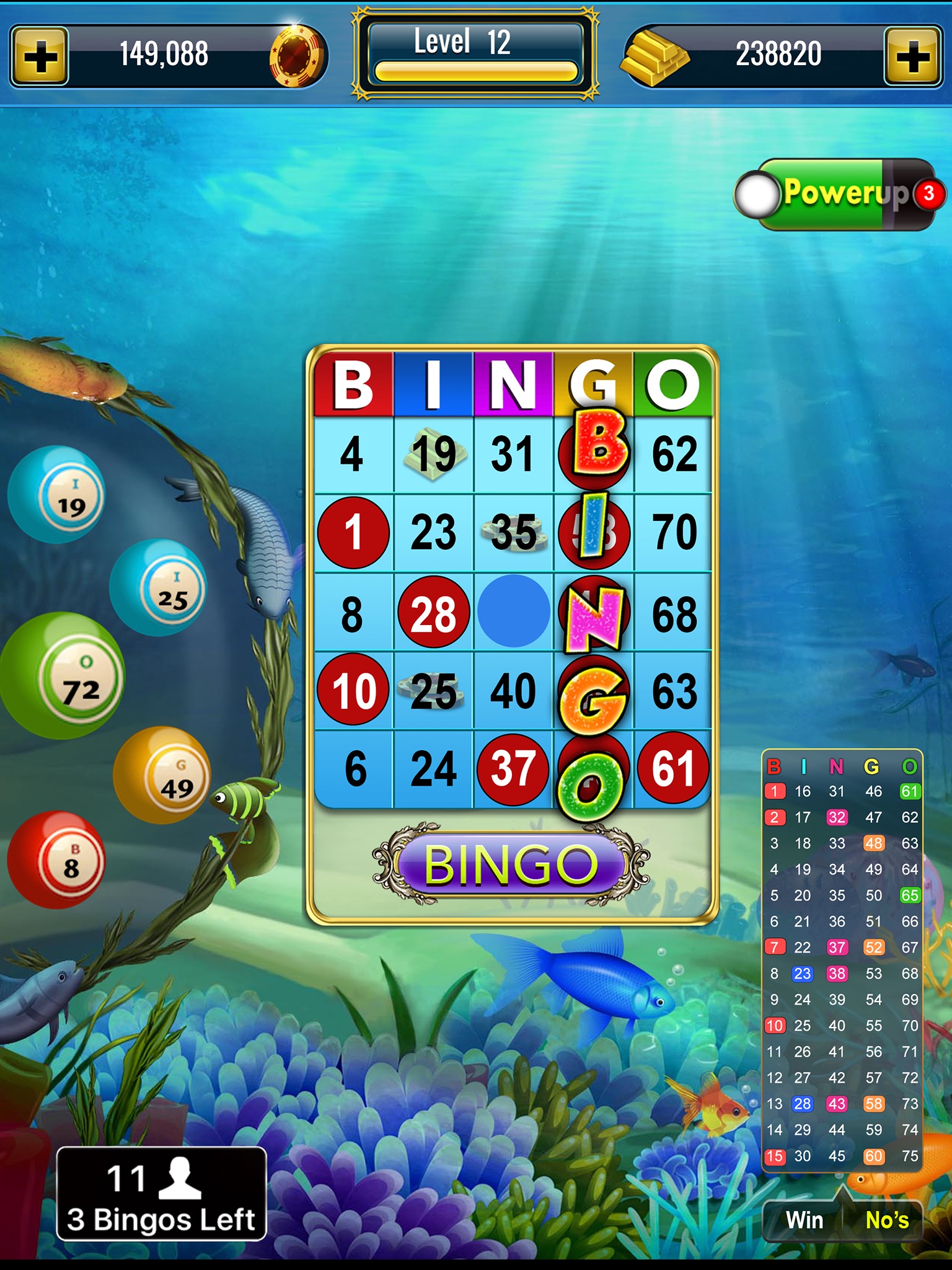 Use some powerups like free daubs, extra coins, extra gold and more!