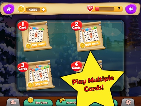 Unlock new rooms as you play single or multiple cards in a fast-paced Bingo game! Simple controls let you switch between cards quickly, daub fast, and call Bingo! Can you keep up? Try Bingo Hall now!