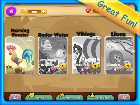 Unlock new rooms as you play single or multiple cards in a fast-paced Bingo game!