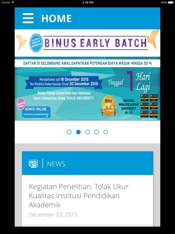 BINUS University Mobile will also provide essential information for guest users such as: