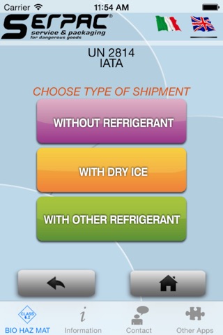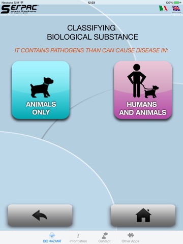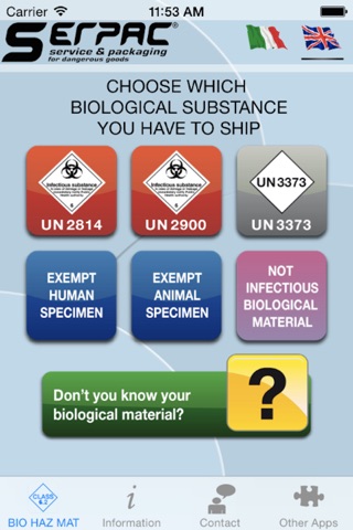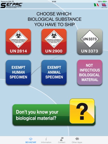BIO HAZ MAT is an application that, through guided steps, will allow you to prepare your shipment of infectious substance, (Category A and B), exempt human / animal specimen and not infectious biological material, in accordance with the requirements of ADR Regulations (by road) and ICAO/IATA Regulations (by air).