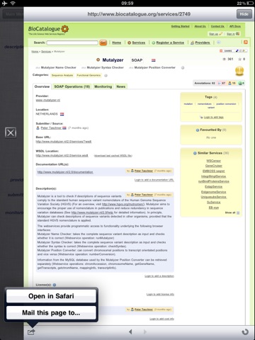 Accessing and sharing the BioCatalogues content just got easier. Use your iPad, iPhone, or iPod Touch to tell your fellow scientists about new and interesting services on-the-go.