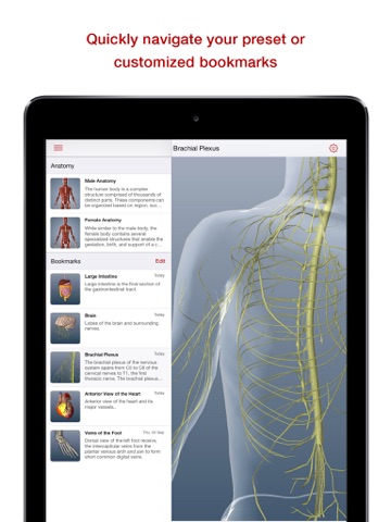 Download now and explore the most comprehensive 3D human body in ways limited in your textbooks and labs. Drill down to any level of detail, personalize and save bookmarks for later reference, annotate to highlight key points, and rotate the body with ease.
