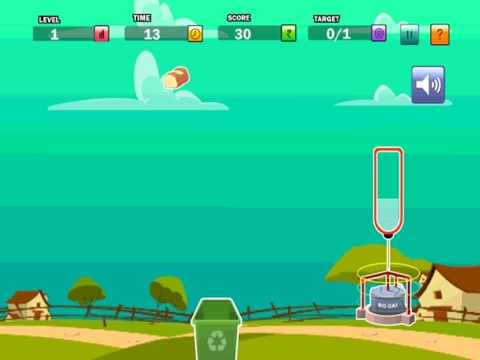 This is a game, to create energy awareness about bio gas production in a fun way. The main aim of this game is to collect all the degradable materials falling and to fill the cylinder, before the time runs out.