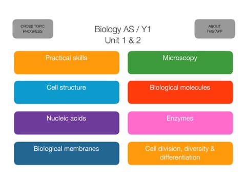 Biology Study App is designed for the NEW OCR Biology AS / Y1. Created for independent study, revision and as a classroom resource for AS students. Also valuable to support A2 revision of basic concepts and first year undergraduate programmes.