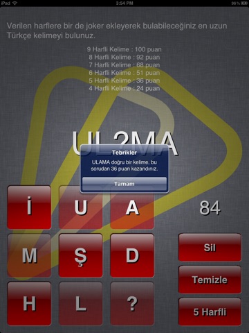 Oyun cok ama cok keyifli fakat bazi kelimeleri kabul etmiyor, mesela Rüzgarli kelimesi â yazamadigimiz icin kabul edilmedi, bunun gibi bir cok kelimede de ayni sorunu yasadim. Güncelleme ciksa cok iyi olur.