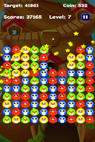 Just tap two or more birds of the same type. But do it wisely so that popping a birds group also create a larger birds group, and hence get more points. There is no time limit, but each stage has target points to proceed to next stage. Always try to match a larger group to get bonus points. And dont forget to keep less unmatched birds at the end of the level , because less un-match birds equal less penalty.