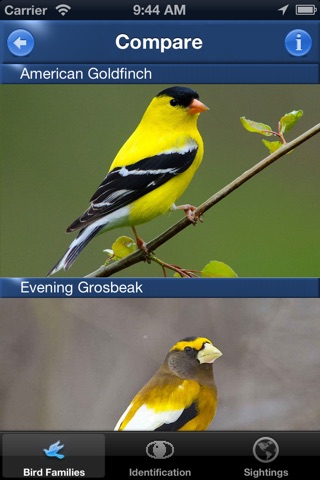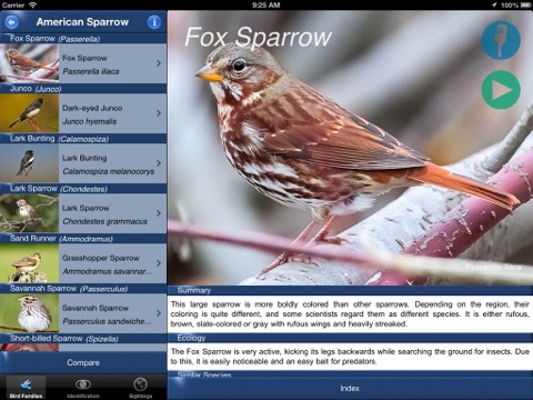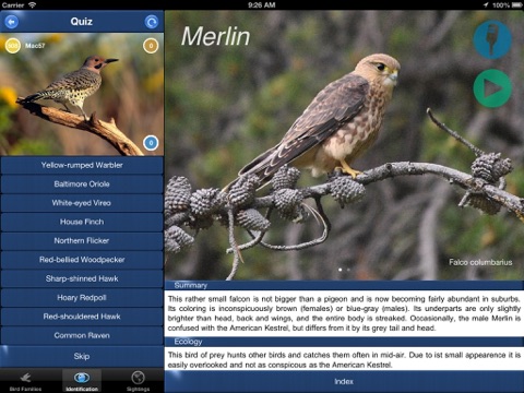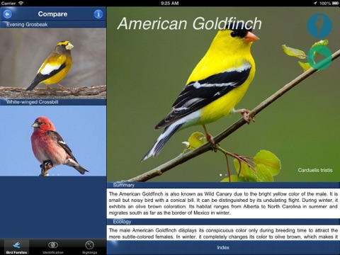 This app does identify some birds that are in the backyard. I like that there are pictures AND songs for most of the birds. Not all birds are listed. I hope that they add more as updates come out.