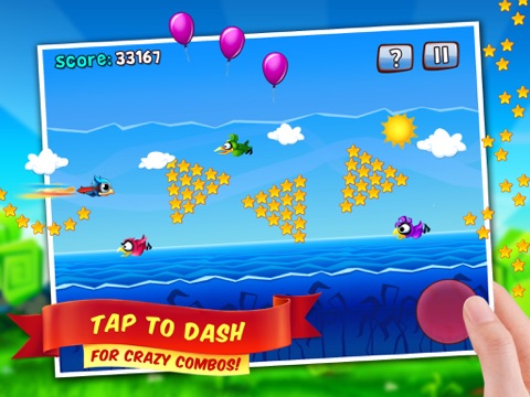 SLIDE your finger to fly past treetops, bushes and stinging bees. TAP and dash for crazy combos and collect bonuses to up your score right to the top as you zoom at the speed of lightning to the pumping music!