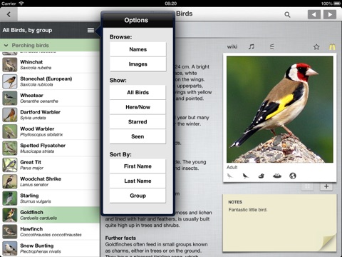 • The app recognises the names of over 650 species and subspecies, so that you can record sightings and add your own photos of these birds.