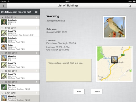 • The app includes iCloud syncing so that your sightings will automatically synchronise across your devices (it is initially off, so if you would like to use it, please go to the Settings section of the app to enable it).