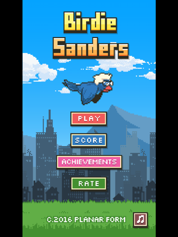 Better late to the political party than never! Take flight with Birdie Sanders to dodge obstacles and defeat Donald Trump and Hillary Clinton. Compete with other players to obtain high scores and achievements. Fly from state to state helping others #feelthebern!