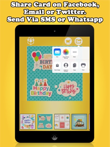 Birthdays! They happen just once a year, so make them special! Choose a perfect birthday card and send it to anyone right here from the app... Share it on Facebook, Tweet it or send it in the email/sms....
