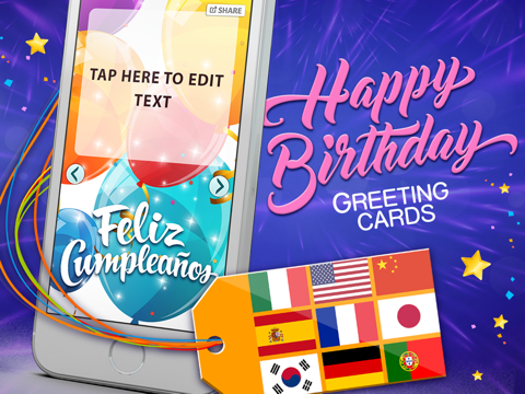 Are you looking for a perfect present for a best friend or family member? Wish a happy birthday with birthday greeting cards on world languages. Inspirational Birthday quotes can now be written on the e-card. Choose your favorite “birthday card“ and share them across major social networks or set greeting card as birthday wallpaper!