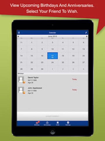 • Sync up your phone book and facebook contacts with the App, for easy access to their birthdays & anniversary dates.