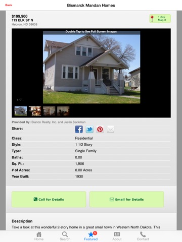 Real Estate exploration is enhanced with Bismarck Mandan Homes property search on your iPhone! Your search has just become easier. No more carrying around listing flyers, trying to search for directions to each one. View eye-popping photo galleries of homes, scan featured listings, and utilize an entire area’s search with just a touch of your mobile device. With this app you now have all of this at the touch of your finger tips. Be an informed real estate consumer on the go!