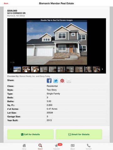 Real Estate exploration is enhanced with Bismarck Mandan Real Estates property search on your iPhone! Your search has just become easier. No more carrying around listing flyers, trying to search for directions to each one. View eye-popping photo galleries of homes, scan featured listings, and utilize an entire area’s search with just a touch of your mobile device. With this app you now have all of this at the touch of your finger tips. Be an informed real estate consumer on the go!