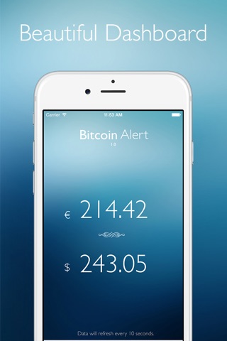 Bitcoin Alert sends Bitcoin price Push Notifications twice a day. You can choose if you want to receive USD, EUR Pushes or both. Also you can always open the app and check the live price yourself.