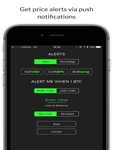 Get push notification alerts when the price of the coin or token you are holding goes above or below your set threshold.