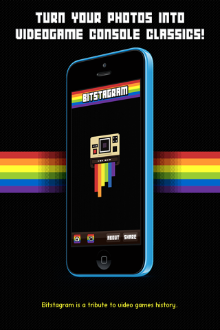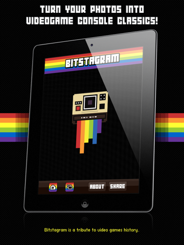 Bitstagram is a tribute to video games history. With just one touch, you can turn your photos into instant retro video gaming classics.