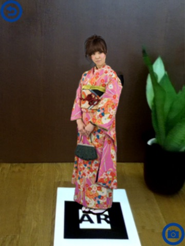 対象マーカーをいろんな角度からカメラで映すと、角度に応じたコンテンツが表示されます。