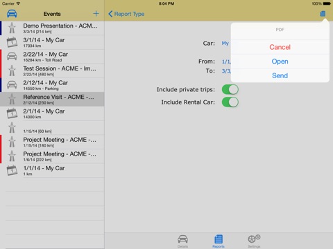 The Biz Driver app is the ultimate tool for keeping track of your business related traveling by car. It allows you to register trips to customers and projects as well as producing reports of your travels in PDF format that can be viewed on your device using apps like iBooks or shared with others using email, Dropbox, etc.