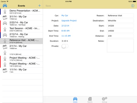 Biz Driver will manage your cars, customers and projects. Use it to register any trips or other travel related event such as parking fees, toll roads, etc. By the end of the month you can use the app to produce different types of reports to account for all travels with a car or for a specific project.