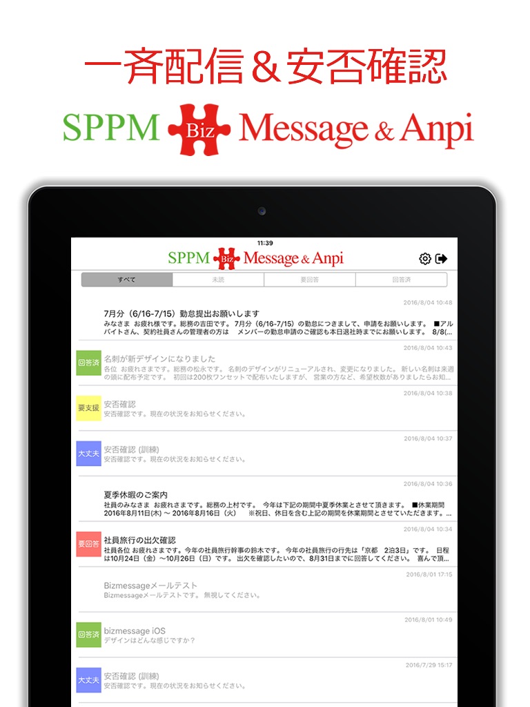 BizAnpiは、ビジネス用「一斉送信&安否確認」サービスです。
