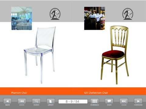 If you’re having a party, wedding or corporate event, you can use our furniture app to choose the style and colour of chair that will help create the perfect setting. Choose from chair frames in many wood finishes, chrome, polycarbonate or plastic combined with seat pads in a wide range of colours. By coordinating your theme colours, you can transform a plain looking venue into a stunning one.