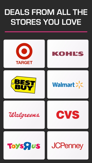 • Covers categories from fashion (Macys), superstores (Target, Walmart), drugstores (Walgreens, CVS) to kids (Gymboree) and daily deals (Groupon). Save money wherever you shop!