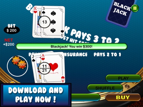 This game is designed for both iPhone and iPad. Grab your copy now and feel the experience of beating the dealer!