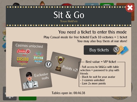 With our VIP ticket you may create a table and choose a password to play exclusively with your friends!