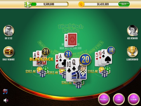 Play world famous casino game Blackjack on your iPhone, iPod Touch, or iPad. Enjoy our unique *Infinite* play-style that automatically changes bet limits based on your cash in bank without needing to switch rooms. Earn daily and timely rewards, and build your fame in Leaderboards!