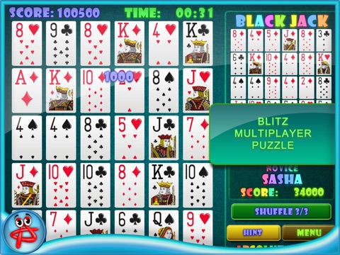 Challenge your logic and quick thinking skills with an original blackjack solitaire. One of the most popular casino games now turns into a blitz multiplayer puzzle. Gain larger score, raise your rank and become a blackjack legend in this addicting card game.