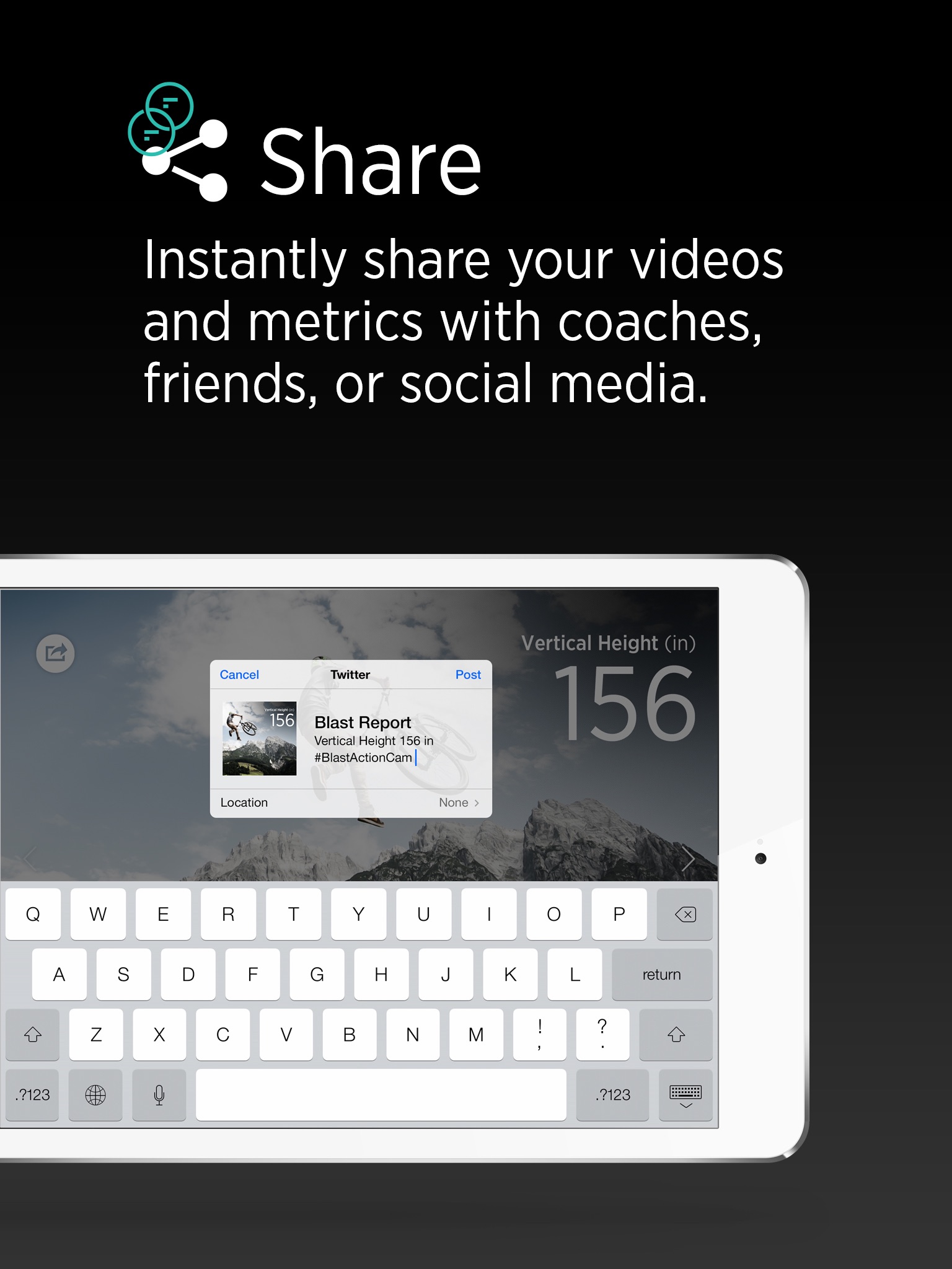 Capture, analyze, and share your most heroic action sports moments with Blast Action Replay. Record video of your actions on your action camera while using the Blast precision motion sensor, then connect to your mobile device and the Blast Action Replay apps patented Smart Video Capture ™ technology will automatically identify your actions and clip your video to create a series of video highlights, overlaid with your metrics (vertical height, hang-time, rotation and jump acceleration). Replay and share your video and metric highlights to social media with one touch. You’ll never look at your action videos the same again!