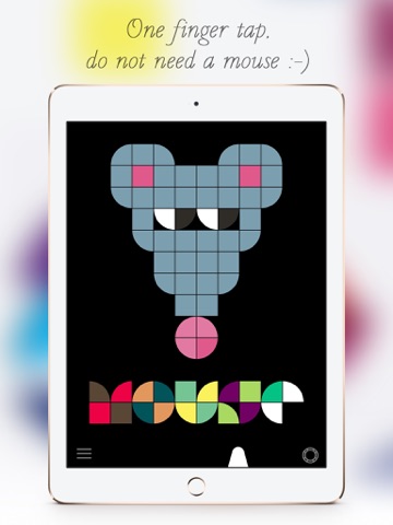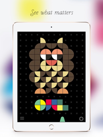 Using mosaic tiles, players create beautiful images with two basic shapes: a square, and a quarter slice of pie. The quarter slice can be rotated 90 degrees by simply tapping it with your finger to select your desired shape. With these limited shapes, children are able to separate the necessary information from the surrounding noise and see what matters.