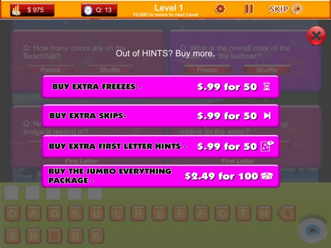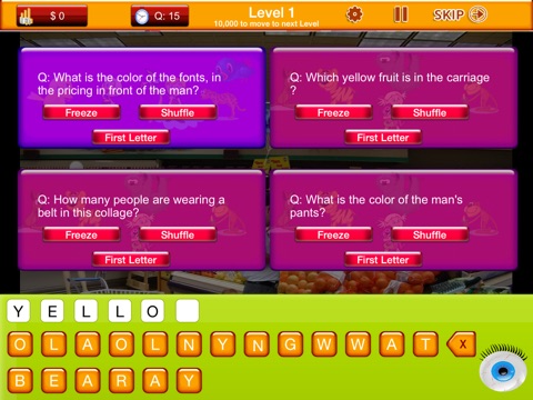 moment.The player will memorize the picture and then answer the 4 questions based on it.