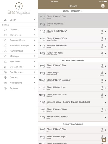 Download the Bliss MediSpa (Formerly Bliss YogaSpa) App today to plan and schedule your rejuvenation! From this Mobile App you can view and sign up for yoga classes, view ongoing promotions, as well as book all of your medispa appointments from cosmetic injectables to IVs, massages and facials. You can also click through to our Facebook and Instagram pages!
