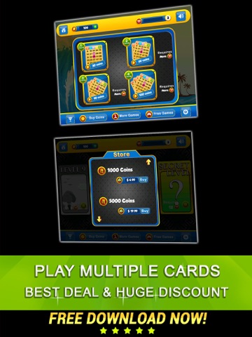 Slick controls let you switch between bingo cards easily, daub called numbers, wipe got numbers & call out Bingo as soon as you have it & win the game! Do you have what it takes to play up to 4 cards? Do you dare to take up the challenge?