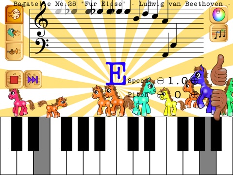 Animated dancing ponies jump and react every time a note is pressed on the keyboard, helping children to connect the piano keys to the notes on the staff. They’ll be learning without even realising it!